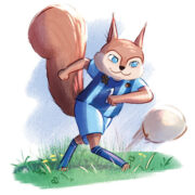 Liam Squirrel lives in the large maple tree in Professor Stratton's backyard with his family, including his brother and cousin, Vinny and Lander. Together, the three of them are known as the Three Scampering Squirrels. Liam is the youngest of the three, and he loves soccer!