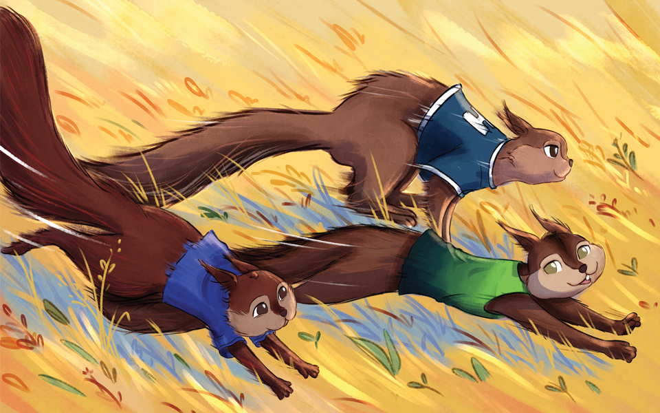 Lander Squirrel lives in the large maple tree in Professor Stratton's backyard with his family, including his brother Liam and cousin Vinny. Together, the three of them are known as the Three Scampering Squirrels. Lander is the fastest runner of the group, and today is the day of a big race! Lander wants to win the Acorn Run more than anything he's ever wanted in his life.
